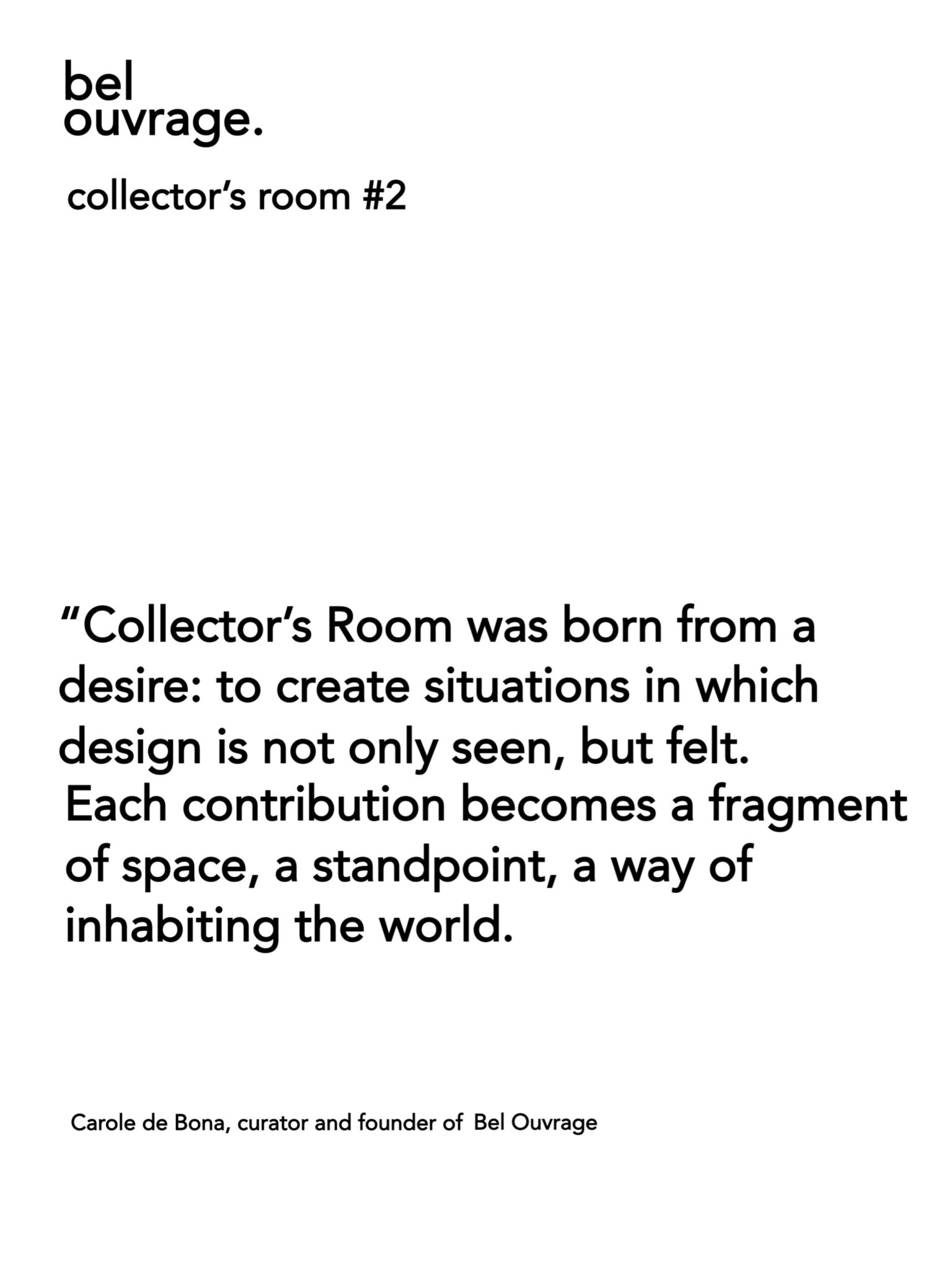Collector’s Room #2 takes place at the heart of Paris’ design season, during Maison&Objet / Paris Expérience. Through dialogues of matter and poetic resonances, this edition will highlight sculptural works, sensorial installations, and rare collaborations between designers and master craftsmakers.
