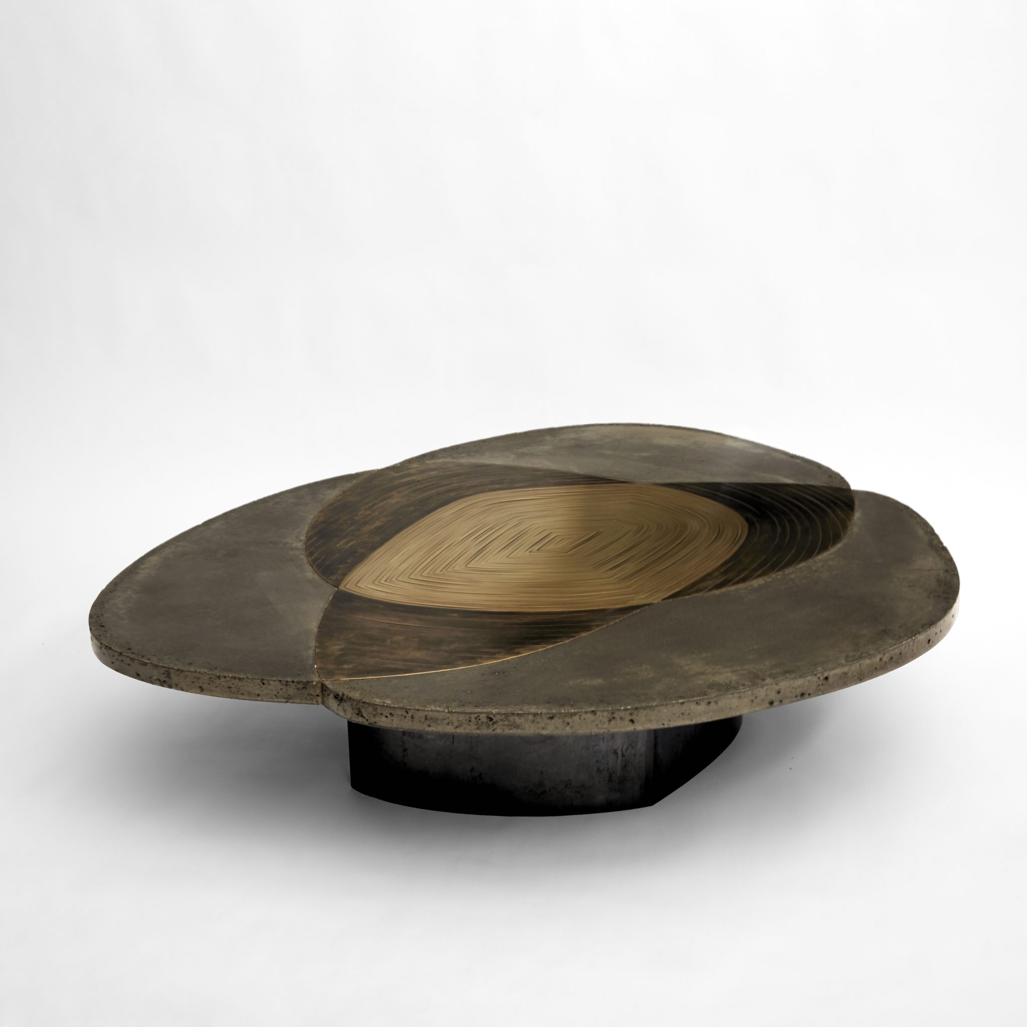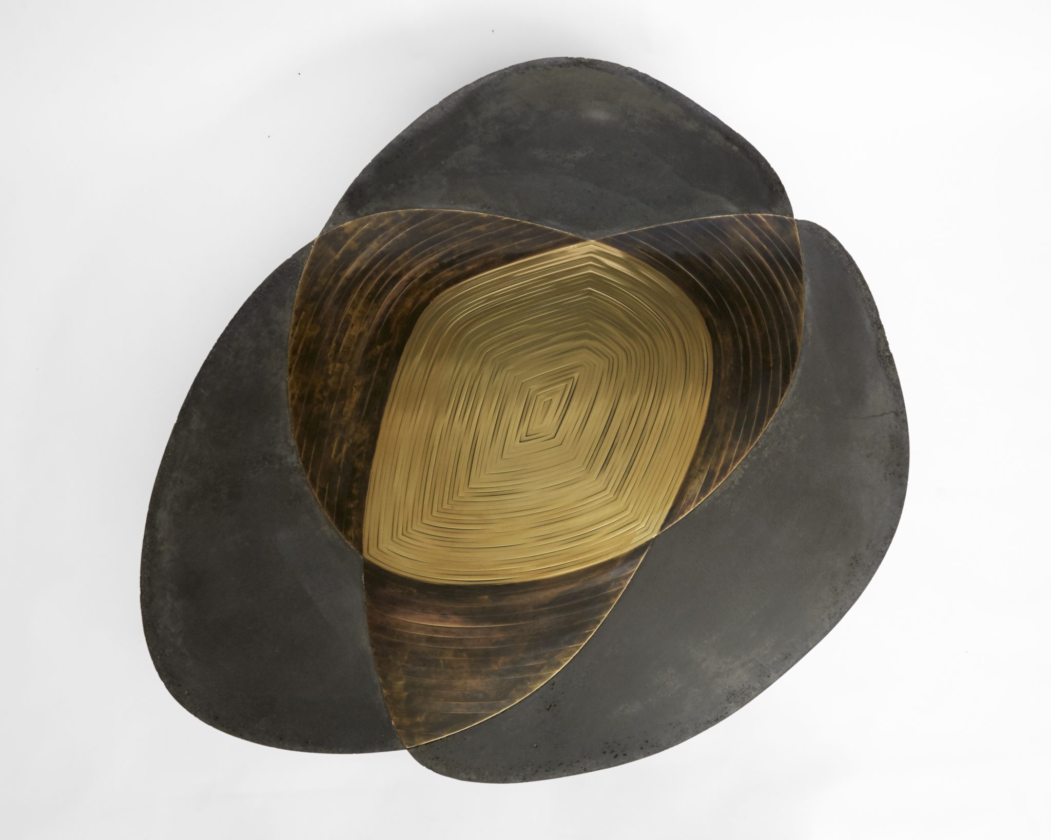 Patinated brass marquetry and concrete
