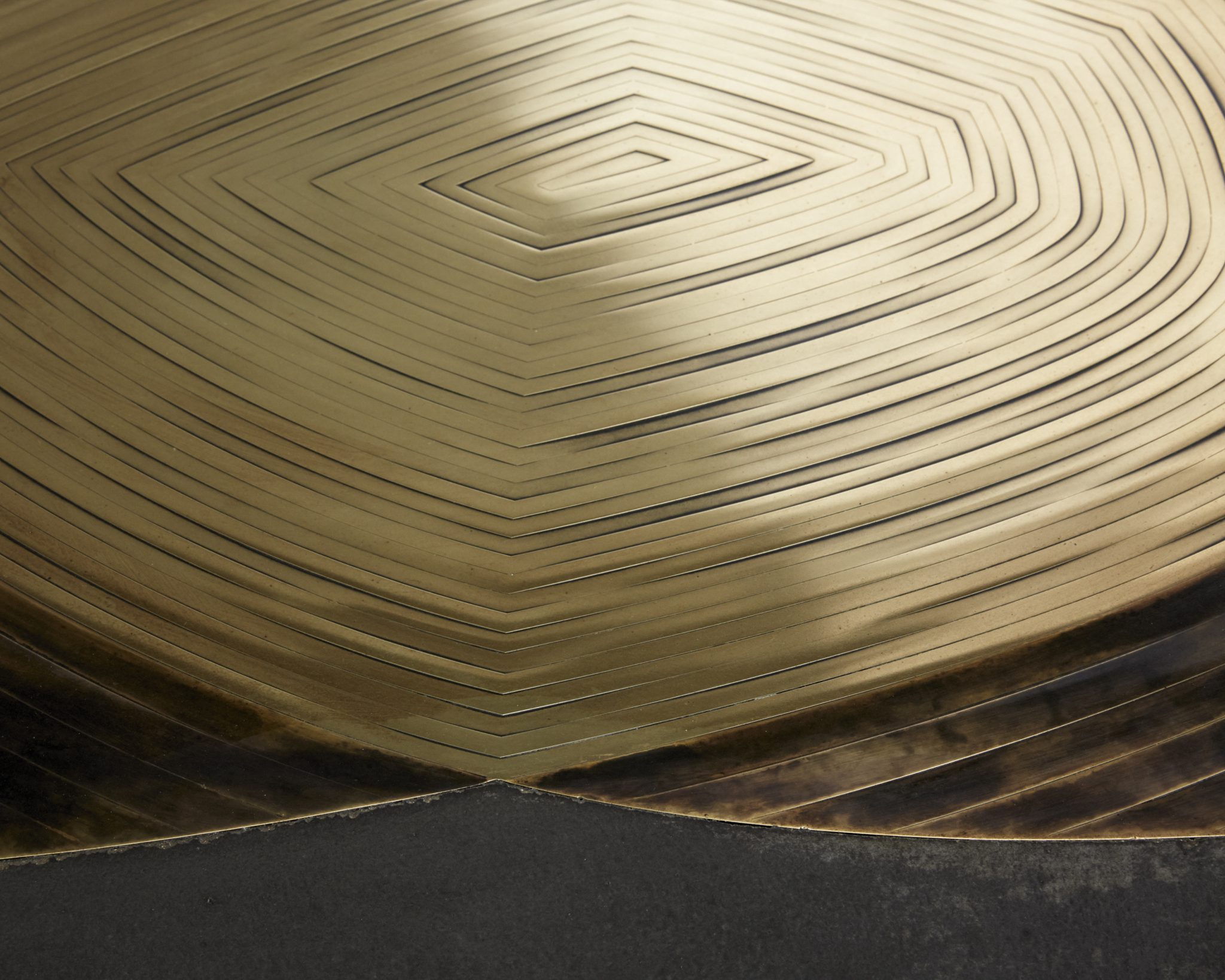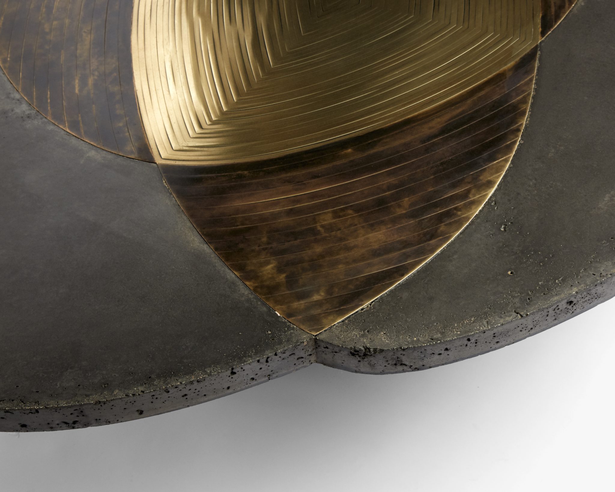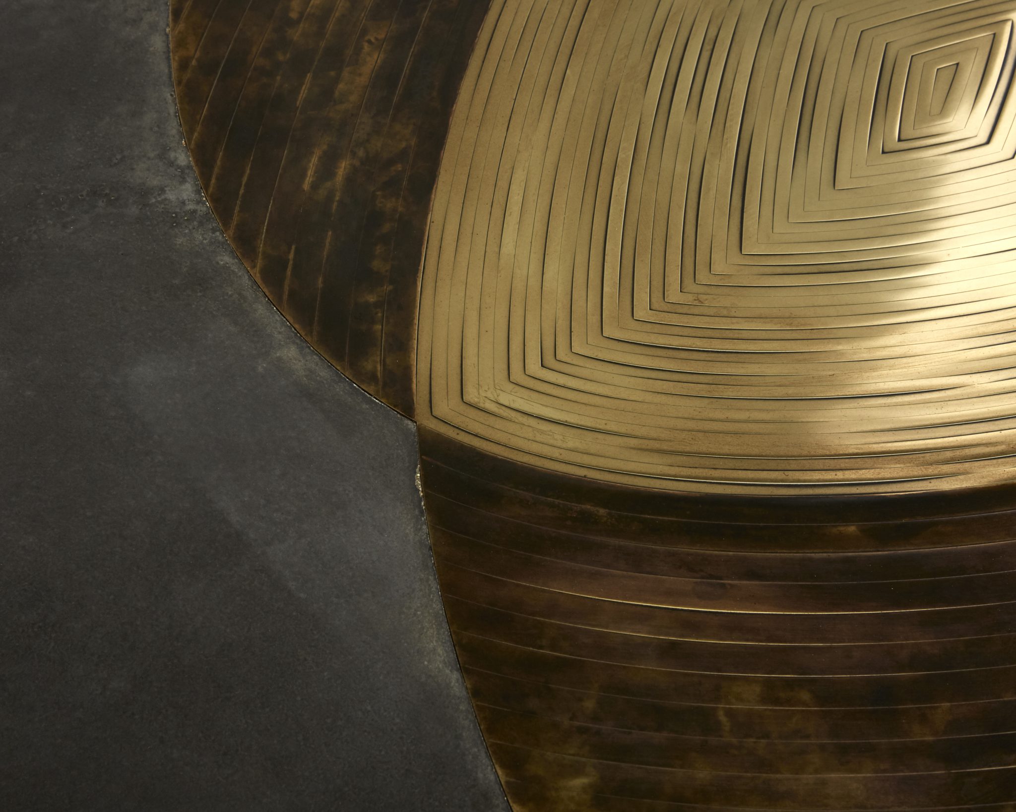 Patinated brass marquetry and concrete