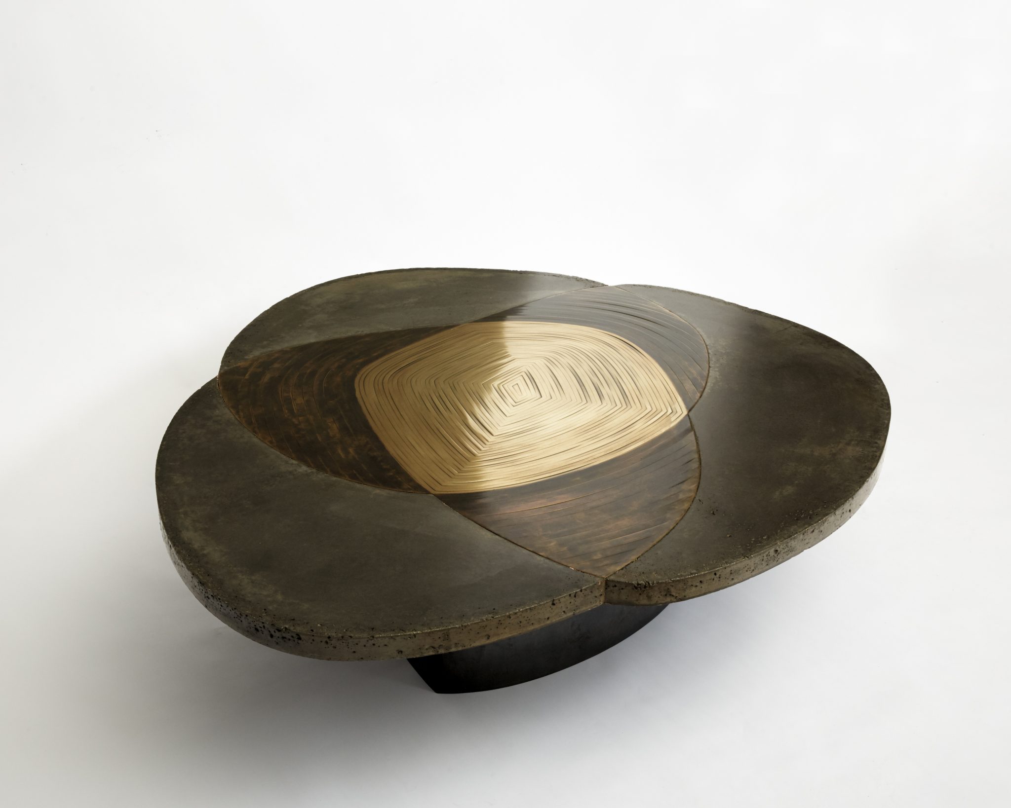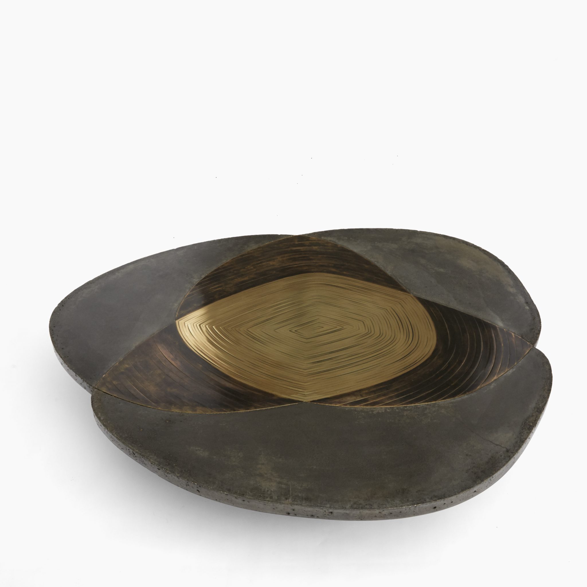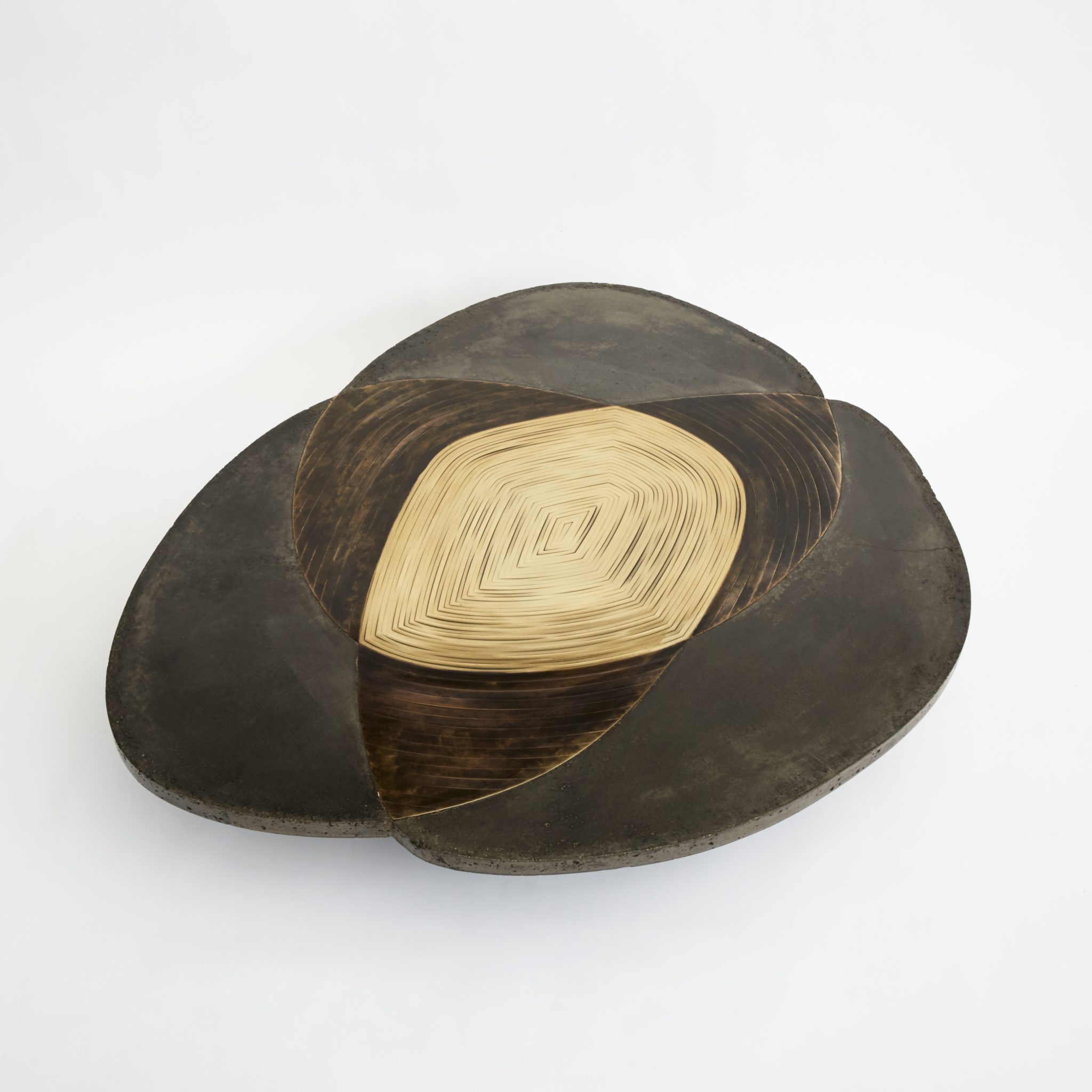 Patinated brass marquetry and concrete
