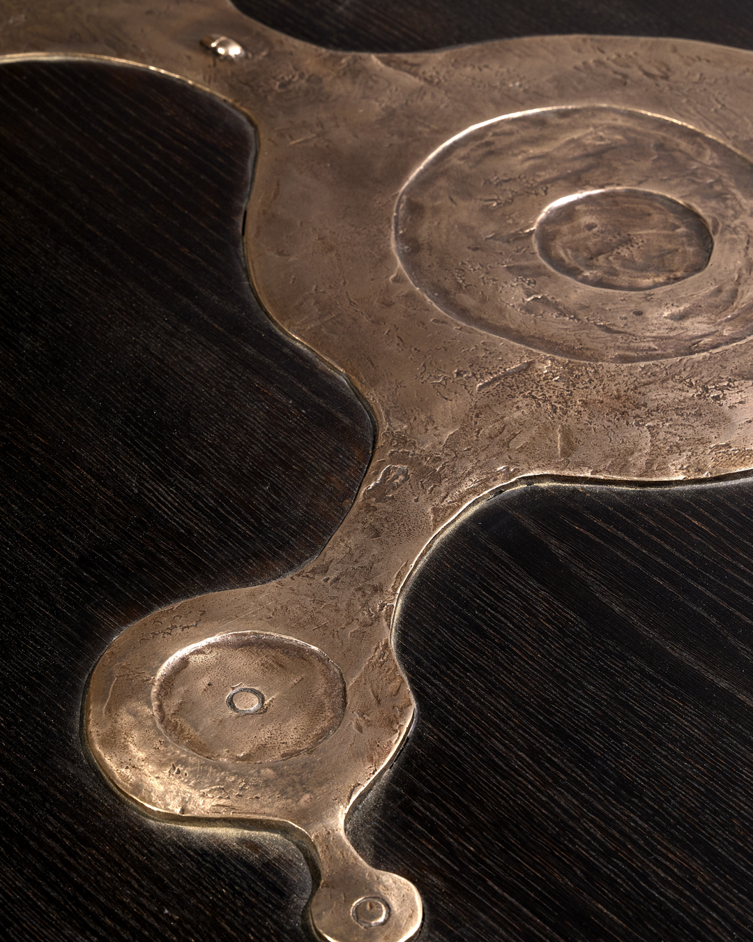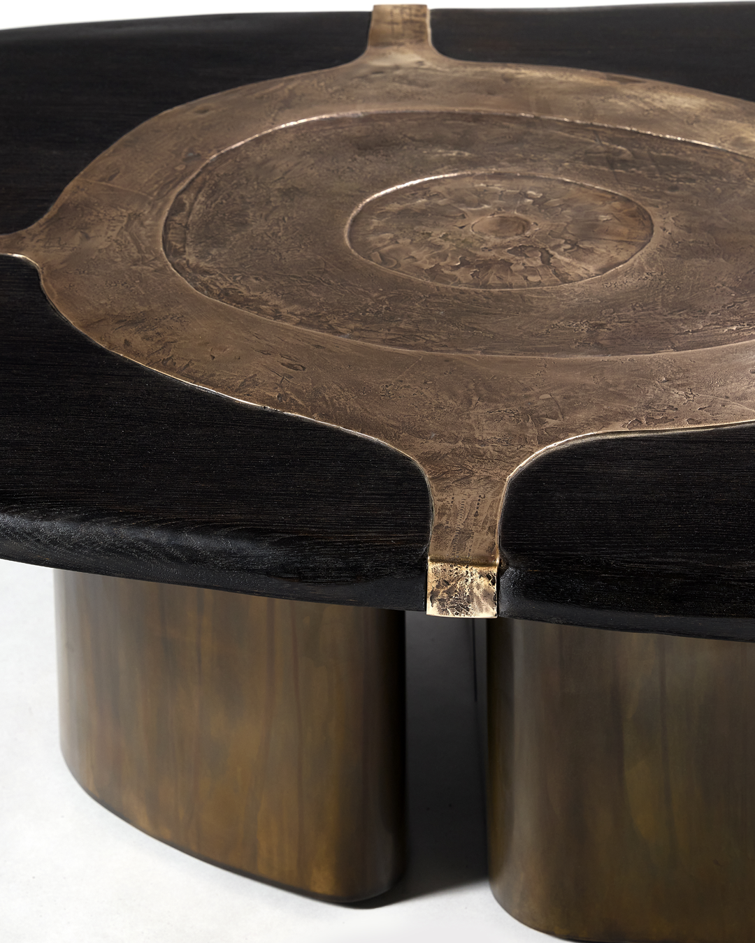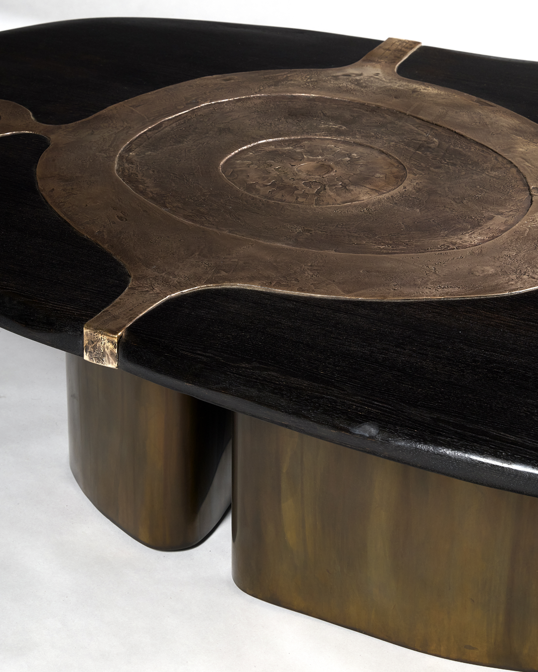 Stained oak, patinated bronze and brass base