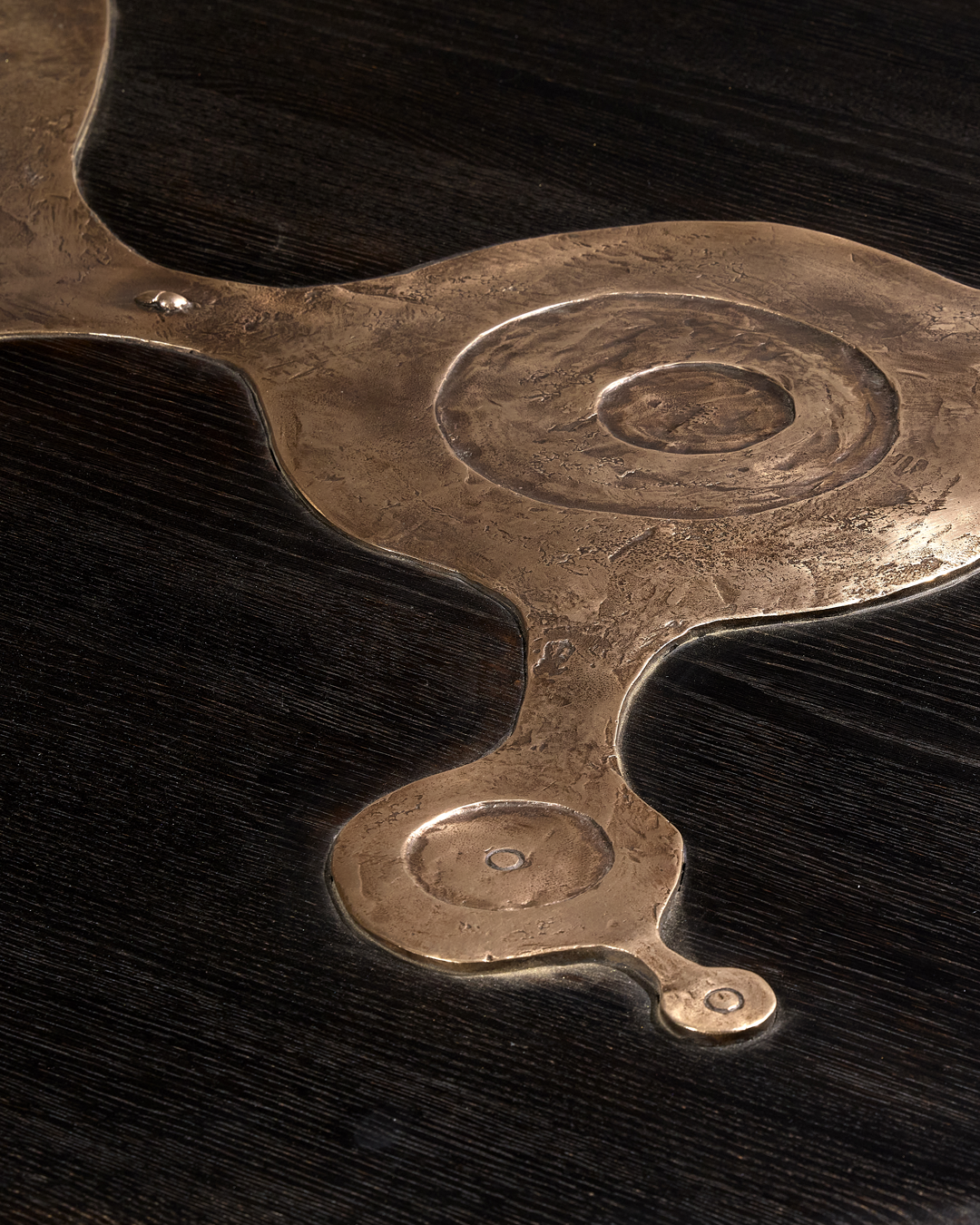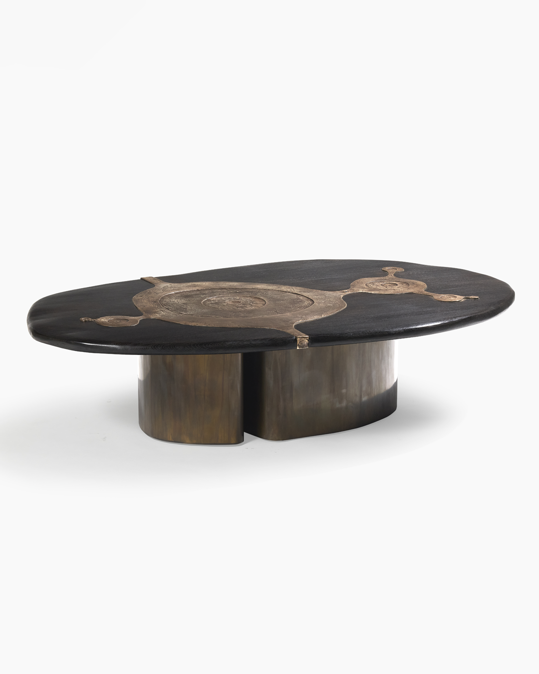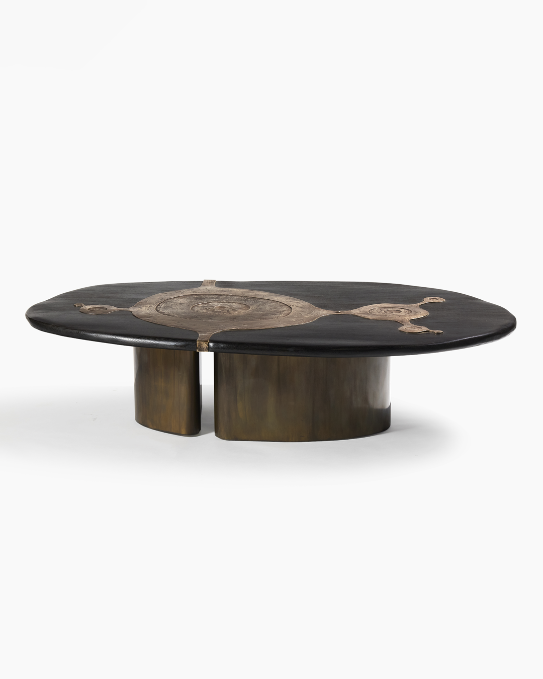 Stained oak, patinated bronze and brass base